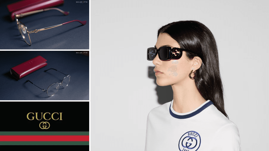 แว่นตาของ Gucci ได้รับความนิยมอย่างรวดเร็ว เพราะผสมผสานความหรูหราเข้ากับดีไซน์ทันสมัย และยังใช้ โลโก้ GG และลวดลายเอกลักษณ์ เช่น แถบสีเขียว-แดง-เขียว ซึ่งทำให้แบรนด์แตกต่างจากแว่นแฟชั่นทั่วไป